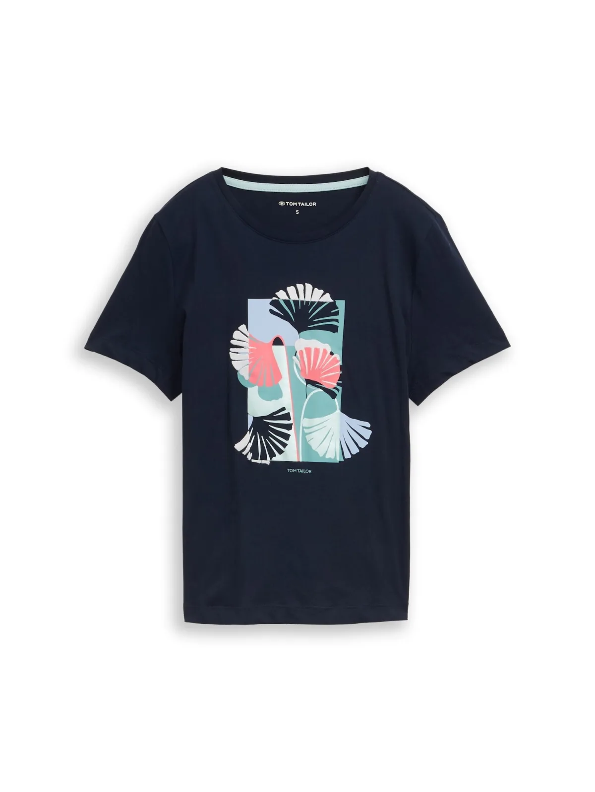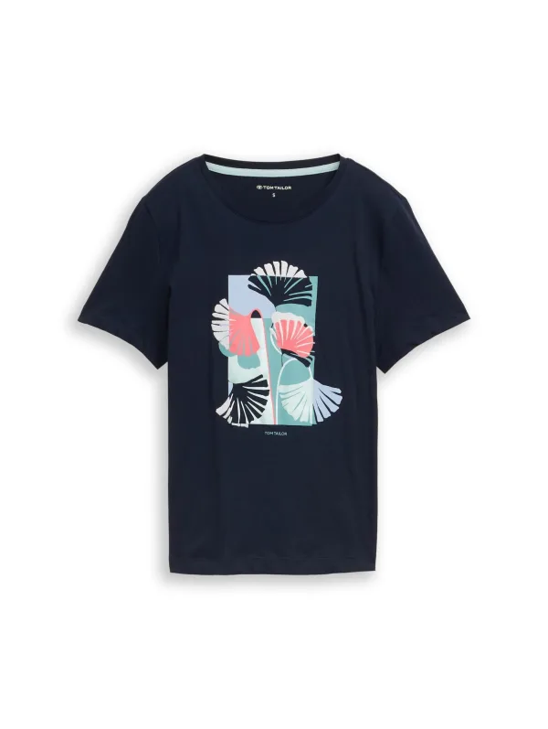 dames T-shirt van Tom Tailor;look: effen;Pasvorm: regular fit;Applicatie: labelprint, motief- en printstitching;hals: ronde hals;mouwvorm: korte mouw;rompzoom: met zijsplitten;materiaalverwerking: jersey;Materiaal: puur katoen