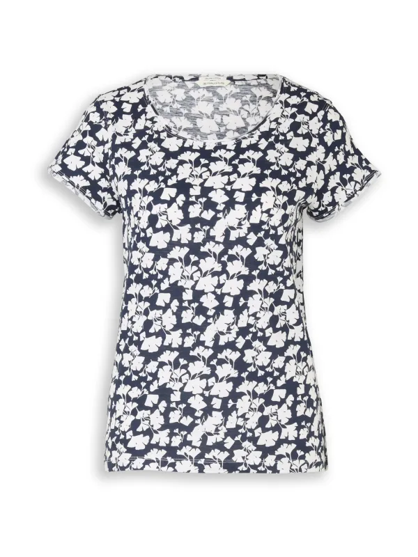 dames T-shirt van Tom Tailor;look: all-over motief/effen kleuren;Pasvorm: relaxed fit;hals: ronde hals;mouwvorm: korte mouw;Mouwboord: rolzoom;Materiaal: puur katoen