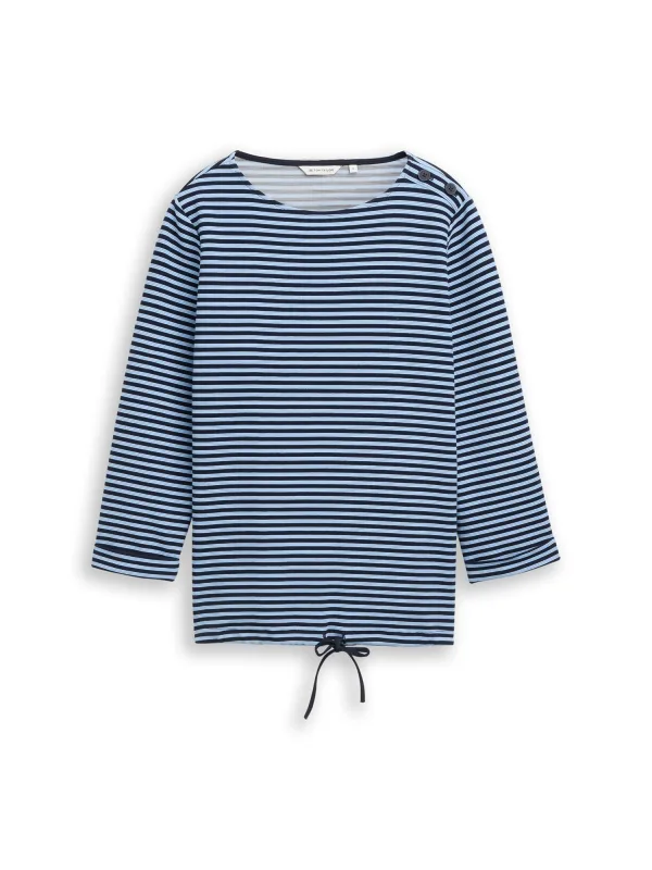 Damesshirt met 3/4-mouwen van Tom Tailor;Look: All-over motief;Pasvorm: Regular fit;Motief: gestreept;Applicatie: Knopen op de kraag;Hals: ronde hals;Mouwvorm: 3/4-mouw;Rompzoom: Tunnelkoord;Materiaalverwerking: RIB;Materiaal: Mix van biologisch katoen