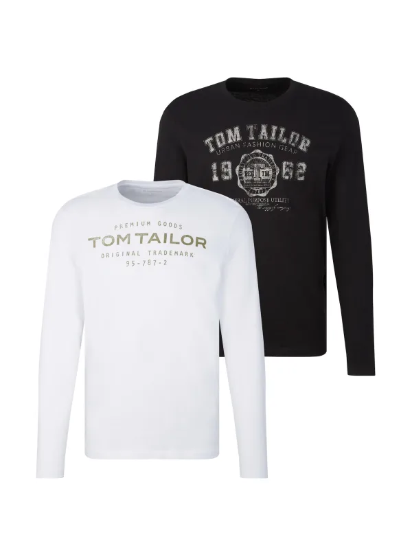 Design: Gevoerde zoom/rand, Ingelegde kraag, Nektape; Materiaal: Jersey; Halstype: Ronde hals; Motief: Logoprint; Extra's: Voelt zacht aan, Label print; Pasvorm: Normale pasvorm; Aantal: 2 Pack; Armlengte: Lange mouw; Lengte: Normale lengte