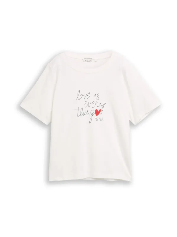 dames T-shirt van Tom Tailor;look: effen;Pasvorm: relaxed fit;Applicatie: motiefprint;hals: ronde hals;mouwvorm: korte mouw;Materiaal: puur katoen