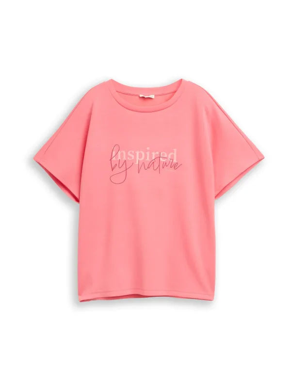 Design: Gevoerde zoom/rand, Geribbelde kraag, Nektape; Materiaal: Jersey; Halstype: Ronde hals; Motief: Tekst print; Details: Borduursels; Extra's: Op staal naden, Voelt zacht aan; Pasvorm: Losse pasvorm; Armlengte: Kwartmouw; Lengte: Normale lengte