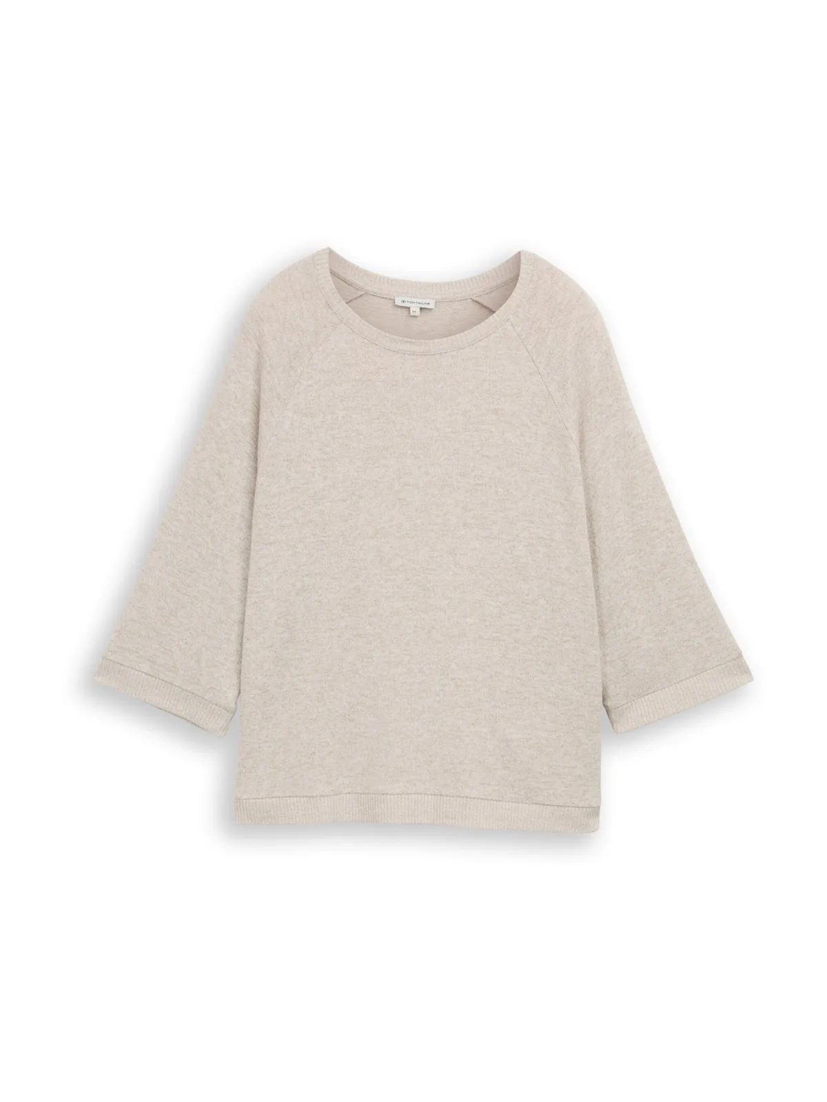 Design: Geribbelde kraag, Raglanmouwen, Geribd ceintuurtje, Nektape; Type sluiting: Slip; Materiaal: Jersey; Halstype: Ronde hals; Motief: Mélange; Extra's: Op staal naden, Voelt zacht aan; Pasvorm: Slanke pasvorm; Armlengte: Driekwart mouw; Lengte: Normale lengte