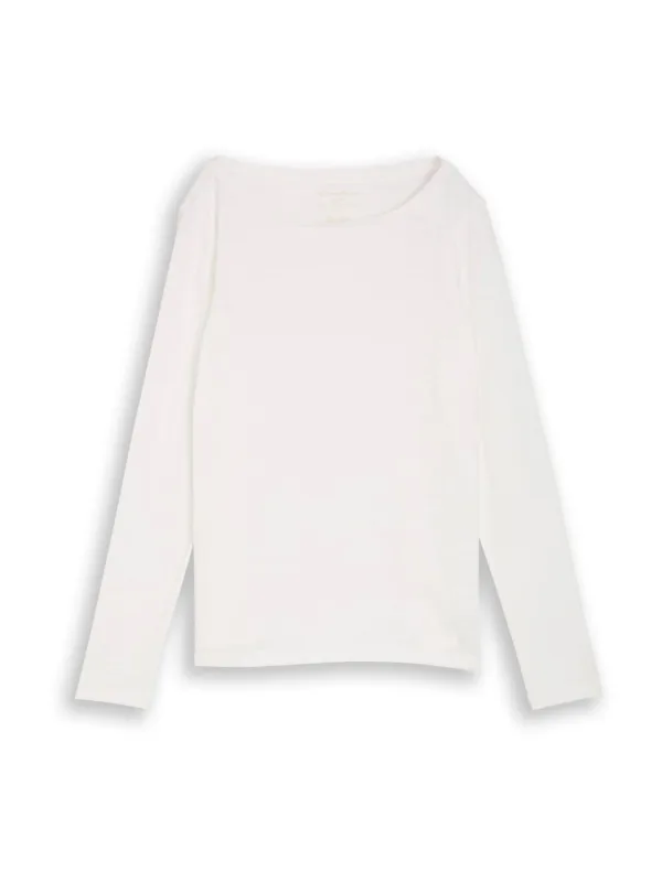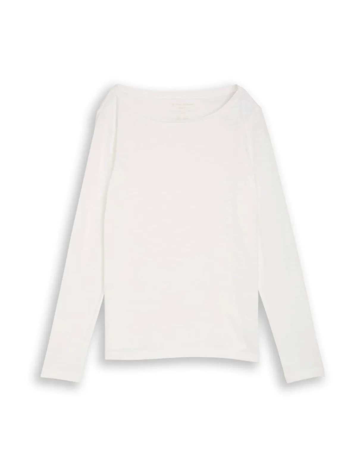 Dames shirt met lange mouwen van Tom Tailor;Look: Mêlee;Pasvorm: Regular Fit;Hals: Boothals;Mouwvorm: lange mouw;Materiaal: Mix van biologisch katoen