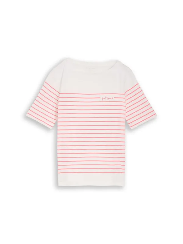 Design: Gevoerde zoom/rand, Geribbelde kraag, Nektape; Materiaal: Jersey; Halstype: Boothals; Motief: Gestreept; Extra's: All-over patroon, Voelt zacht aan, Label print; Pasvorm: Normale pasvorm; Armlengte: Halve mouw; Lengte: Normale lengte