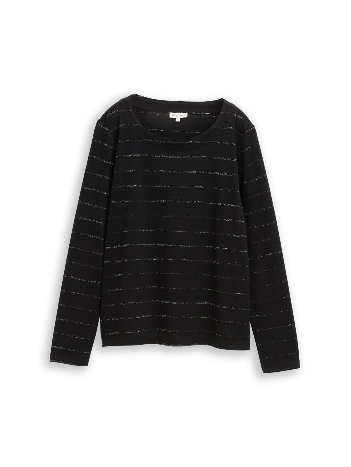 Design: Gevoerde zoom/rand, Rechte zoom; Materiaal: Jersey; Halstype: Ronde hals; Motief: Gestreept; Extra's: Glitterend, All-over patroon; Pasvorm: Normale pasvorm; Armlengte: Lange mouw; Lengte: Normale lengte
