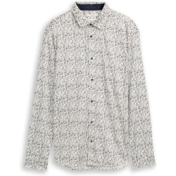 Stretch Shirt - Print Design Stretch shirt van TOM TAILOR met lange mouwen. Voorzien van een moderne print en knoopsluiting aan de voorzijde. Klassieke kraag en manchetten met knopen. Stiksellogo bij de taille. Elegante look voor dagelijkse draagbaarheid.Kleur: licht met donkerblauw dessin.