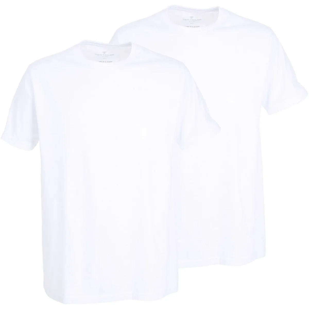 T-shirt van TOM TAILOR voor heren;Puur katoen;Recht model;Pak van 2 paar;Ronde hals;Ruglengte bij maat M: 69 cm