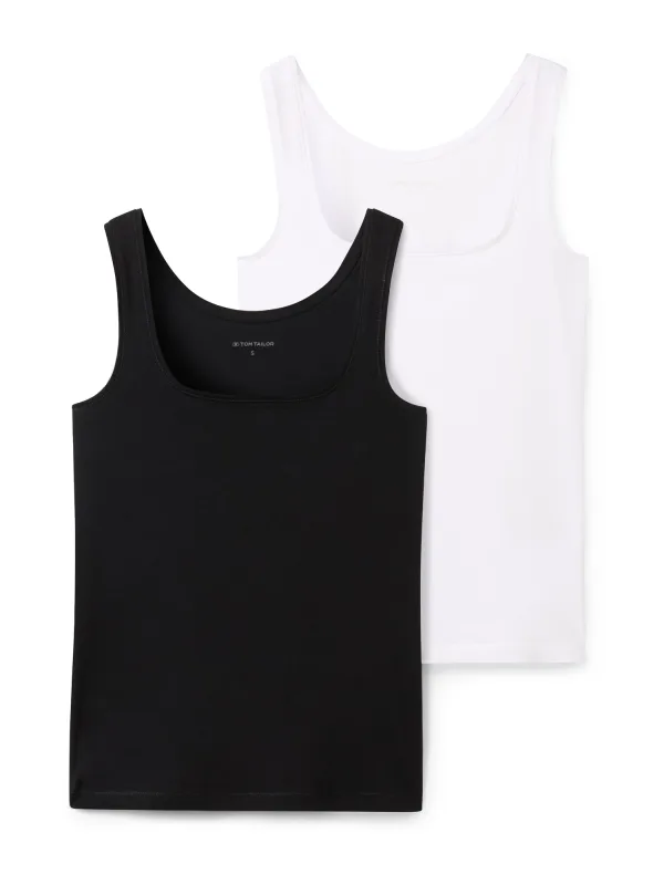 Design: Gevoerde zoom/rand, Rechte zoom, Ingelegde kraag; Materiaal: Jersey; Halstype: Carréhals; Motief: Effen; Soort bandjes: Normale bandjes; Extra's: Op staal naden, Voelt zacht aan; Pasvorm: Slanke pasvorm; Aantal: 2 Pack; Armlengte: Mouwloos; Lengte: Normale lengte