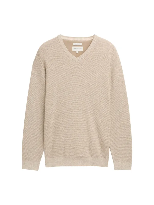 Tom Tailor Gebreide trui met V-hals van biologisch katoen