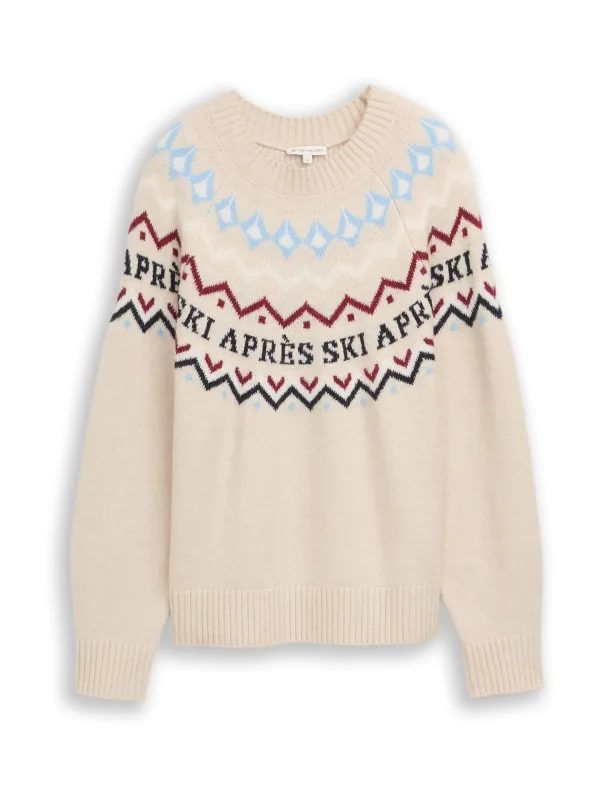 Design: Geribbelde kraag, Rechte zoom, Raglanmouwen, Geribd ceintuurtje; Materiaal: Knitwear; Halstype: Ronde hals; Motief: Winterse print; Extra's: Fully fashioned, Met textuur, Voelt zacht aan; Pasvorm: Normale pasvorm; Armlengte: Lange mouw; Lengte: Normale lengte