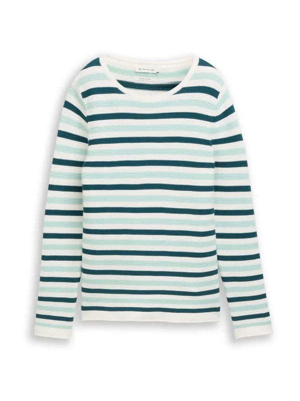 Design: Geribbelde kraag, Rechte zoom; Materiaal: Knitwear; Halstype: Ronde hals; Motief: Gestreept; Extra's: All-over patroon, Met textuur; Pasvorm: Normale pasvorm; Armlengte: Lange mouw; Lengte: Normale lengte
