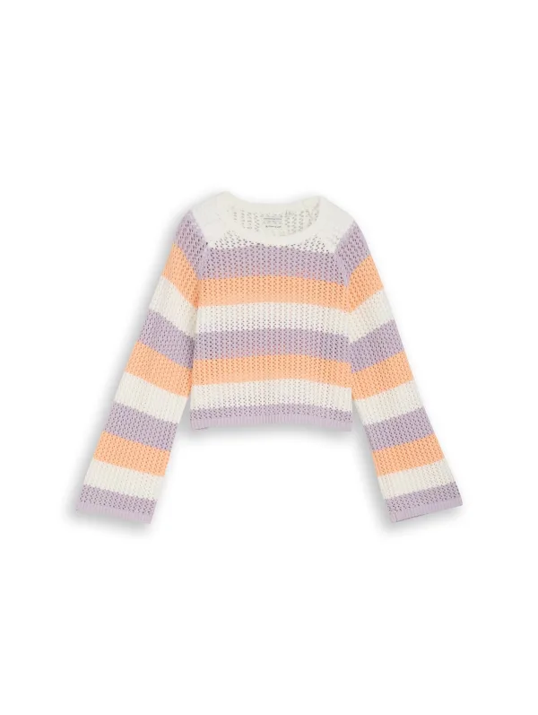 Materiaal: Knitwear; Halstype: Ronde hals; Motief: Gestreept; Details: Mesh; Extra's: All-over patroon; Pasvorm: Normale pasvorm; Armlengte: Lange mouw; Lengte: Korte pasvorm