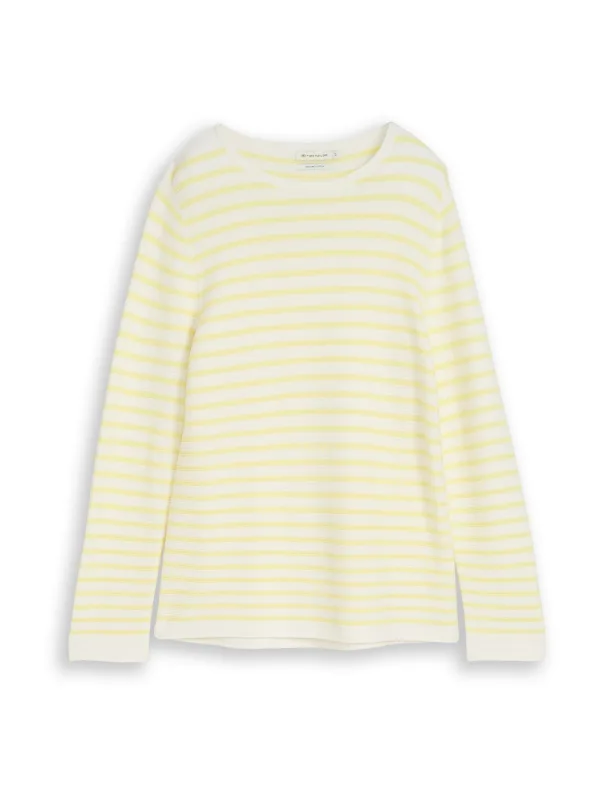 TOM TAILOR Trui ‘Ottoman’ limoen / wit