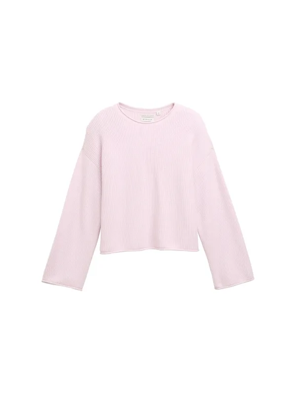 Design: Gerolde boord, Overcut schouder; Materiaal: Knitwear; Halstype: Ronde hals; Motief: Effen; Extra’s: Op staal naden; Pasvorm: Normale pasvorm; Armlengte: Lange mouw; Lengte: Korte pasvorm