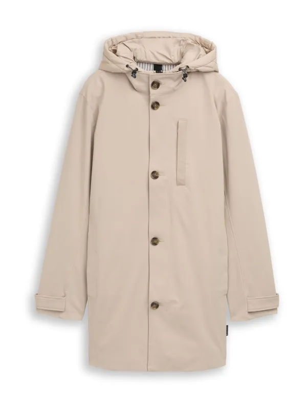 heren parka van Tom Tailor;look: effen;Pasvorm: regular fit;Kraagmodel: opstaande kraag met capuchon en tunnelkoord;Sluiting: verborgen ritssluiting en drukknoopsluiting;Applicatie: labelpatch;Details: uitneembare inzet;Mouwvorm: lange mouw;Zakken: zij- steekzakken, binnenzak