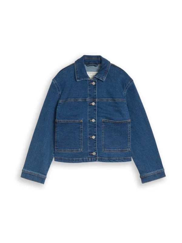 Design: 1-knoops manchetten, Gevoerde zoom/rand, Rechte zoom, Opgezette zakken; Type jas: Blouson; Voering: Niet gevoerd; Materiaal: Denim; Motief: Effen; Extra's: Contrasterende naden, Vaste grip; Pasvorm: Normale pasvorm