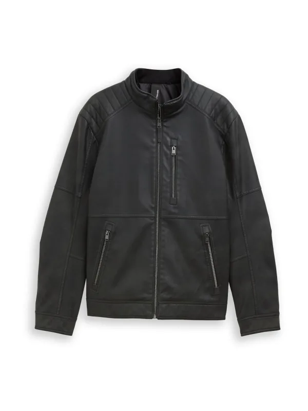 Design: Gevoerde zoom/rand, Borstzak, Ritszakken aan de zijkant; Type sluiting: Ritssluiting; Type jas: Bikerjack; Voering: Licht gevoerd; Materiaal: Imitatieleder; Motief: Effen; Extra's: Op staal naden, Gladde stof; Pasvorm: Normale pasvorm