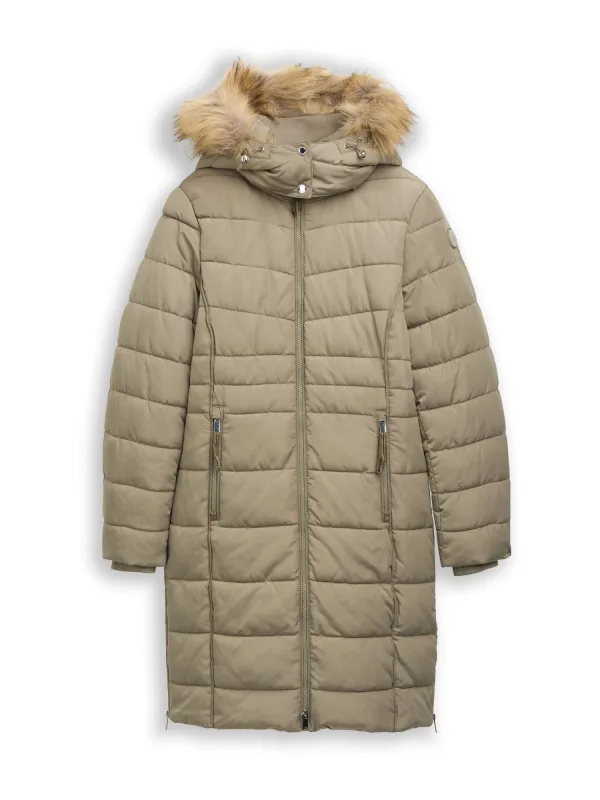 Type mantel: Gewatteerde jas; Design: Capuchon met afneembare nepbont kraag, Ritszakken aan de zijkant, Ritszakken aan de zijkant; Type sluiting: Ritssluiting; Voering: Warm gevoerd; Materiaal: Gerecycled materiaal; Motief: Effen; Extra's: Gladde stof, Stevige stof; Pasvorm: Slanke pasvorm; Lengte: Normale lengte