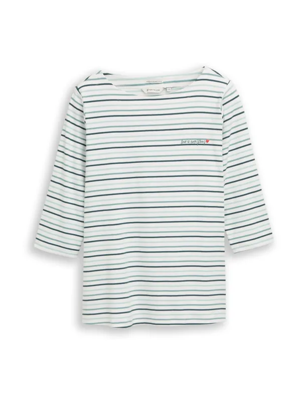 Design: Gevoerde zoom/rand, Rechte zoom; Materiaal: Jersey; Halstype: Boothals; Motief: Gestreept; Extra's: All-over patroon, Voelt zacht aan; Pasvorm: Normale pasvorm; Armlengte: Driekwart mouw; Lengte: Normale lengte