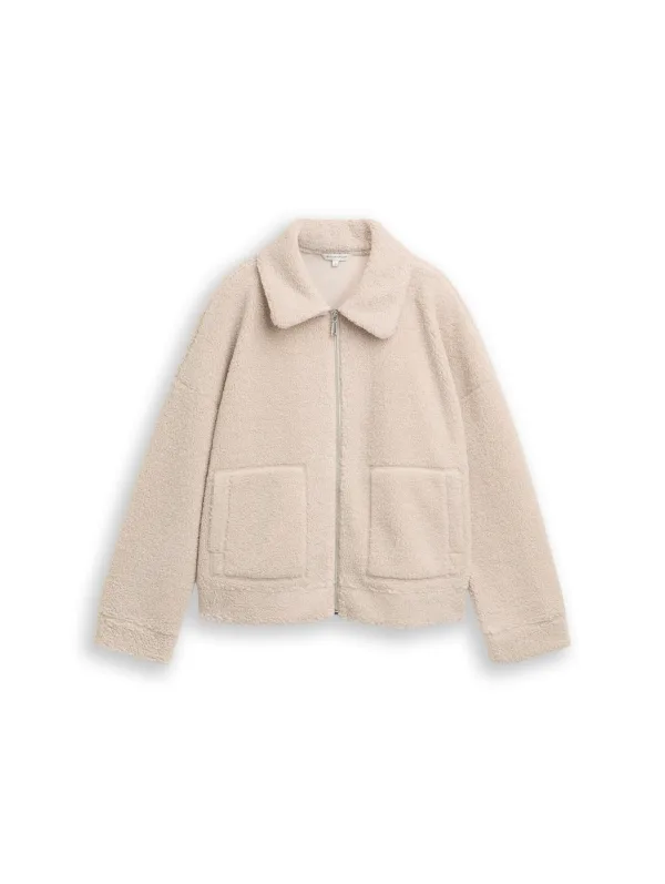 Tom Tailor Zweetjas van teddyfleece XL taupe grey melange