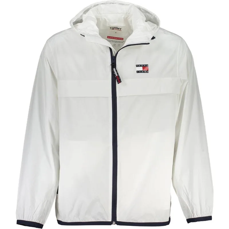 Tommy Jeans windjack met vlagbadge, heren, wit, synthetisch. Authentiek Tommy Jeans kledingstuk - streetwear/sportkleding design van Tommy Jeans - Tommy Jeans herenmode, perfect voor dagelijks gebruik - dit witte Tommy Jeans windjack past perfect bij de rest van je garderobe - comfortabele synthetische stof - klassieke stijl - vlagbadge