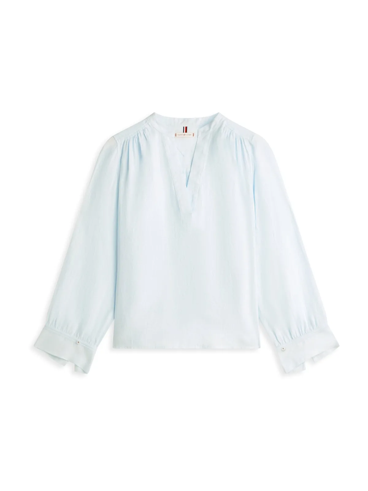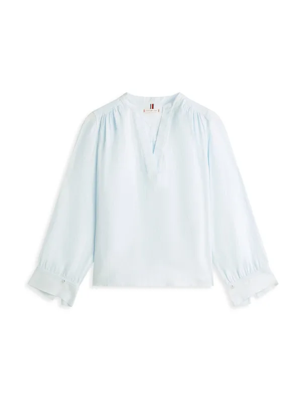 Blouse type: Wijde blouse; Design: Gevoerde zoom/rand, Rechte zoom, Brede mouwopeningen; Materiaal: Linnen; Motief: Effen; Kraag: Tuniek kraag; Details: Gedrapeerd; Extra's: Label borduurwerk, Op staal naden; Pasvorm: Normale pasvorm; Armlengte: Lange mouw; Lengte: Normale lengte