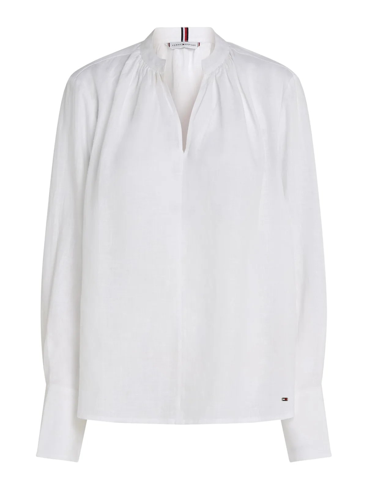 Blouse type: Wijde blouse; Design: Gevoerde zoom/rand, Rechte zoom; Materiaal: Linnen; Motief: Effen; Kraag: Tuniek kraag; Details: Gedrapeerd; Extra's: Op staal naden, Lichte stof; Pasvorm: Losse pasvorm; Armlengte: Lange mouw; Lengte: Normale lengte
