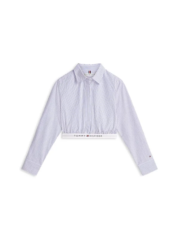 Blouse type: Wijde blouse; Design: Elastische taille/zoom, Rugplooi, Verborgen knop placket; Type sluiting: Knoopsluiting; Materiaal: Katoen; Motief: Gestreept; Kraag: Kentkraag; Details: Borduursels, Plooien; Extra's: All-over patroon, Label borduurwerk, Voelt zacht aan; Pasvorm: Normale pasvorm; Armlengte: Lange mouw; Lengte: Korte pasvorm
