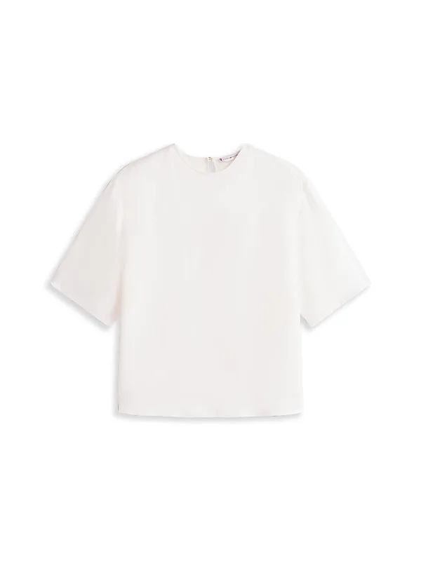 Blouse type: Blouseshirt; Design: Gevoerde zoom/rand, Rechte zoom, Keyholesluiting; Type sluiting: Knoopsluiting; Materiaal: Gerecycled materiaal; Halstype: Ronde hals; Motief: Effen; Kraag: Zonder kraag; Details: Cut-outs; Extra's: Op staal naden, Gladde stof, Milieuvriendelijk geproduceerd; Pasvorm: Normale pasvorm; Armlengte: Kwartmouw; Lengte: Normale lengte