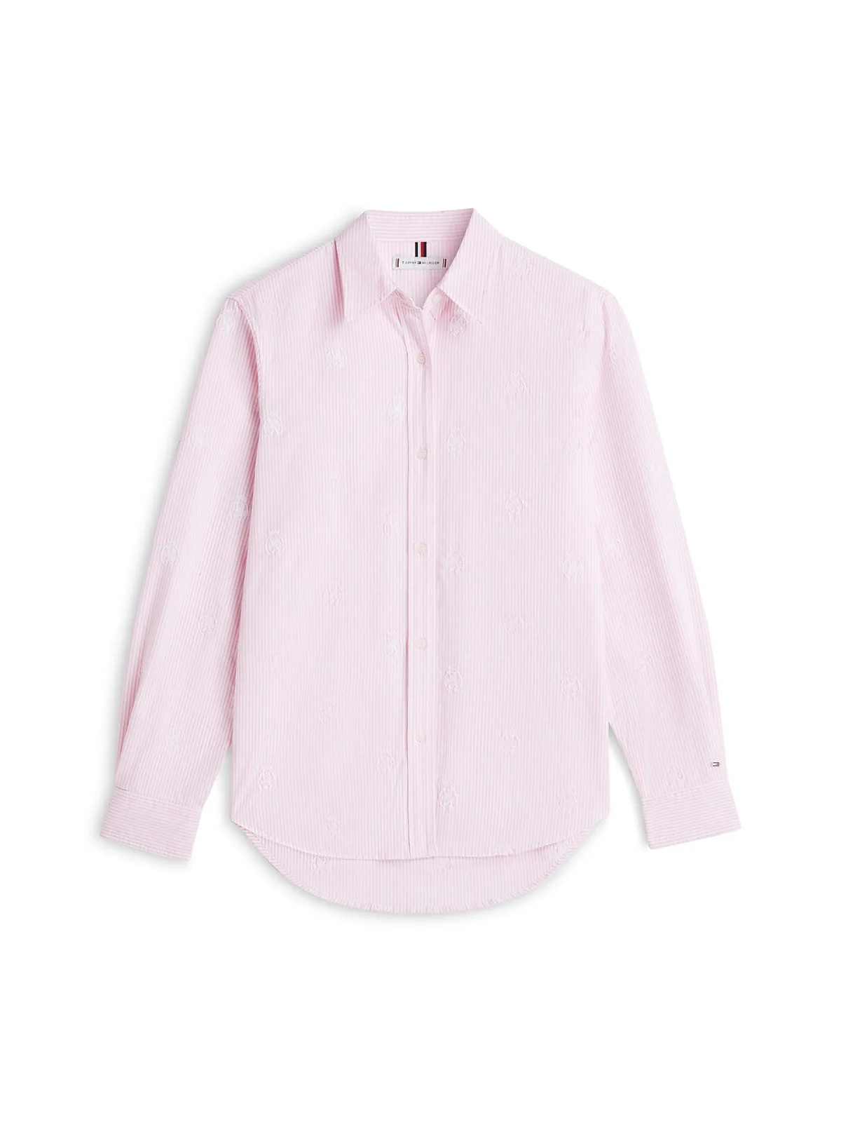 Deze Tommy Hilfiger Oxford blouse heeft rechte mouwen en een klassieke kraag. De blouse is gemaakt van 100% katoen, heeft een streep en een knoopsluiting. Met borduursels voor een speelse uitstraling.