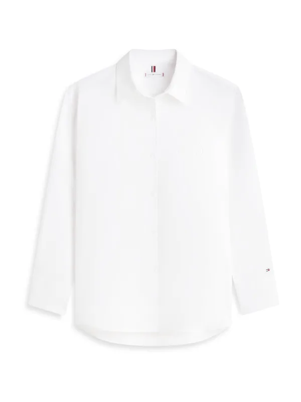 Blouse type: Klassieke blouse; Design: 1-knoops manchetten, Gevoerde zoom/rand; Type sluiting: Knoopsluiting; Materiaal: Katoen; Motief: Effen; Kraag: Kentkraag; Details: Borduursels; Extra's: Label borduurwerk, Voelt zacht aan; Pasvorm: Wijde pasvorm; Armlengte: Lange mouw; Lengte: Normale lengte