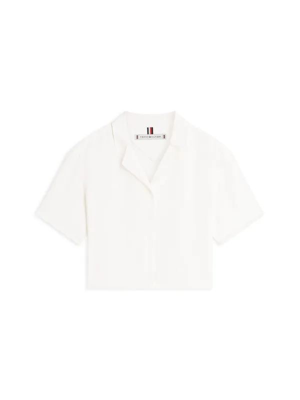 Blouse type: Klassieke blouse; Design: Gefranjerde zoom, Knop placket, Revers kraag, Rugplooi, Knop sluiting; Type sluiting: Knoopsluiting; Materiaal: Linnen; Motief: Effen; Details: Franjes, Plooien; Extra's: Label patch/label flag, Op staal naden; Pasvorm: Losse pasvorm; Armlengte: Halve mouw; Lengte: Korte pasvorm