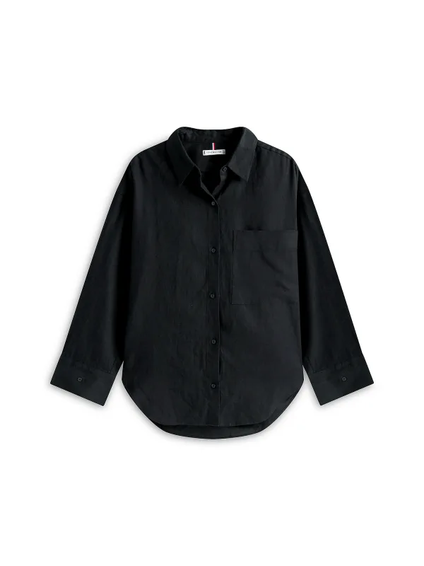 Blouse type: Klassieke blouse; Design: Gevoerde zoom/rand, Knop placket, Rugplooi, Ronde zoom, Borstzak; Type sluiting: Knoopsluiting; Materiaal: Linnen; Motief: Effen; Kraag: Kentkraag; Details: Plooien; Extra's: Op staal naden, Voelt zacht aan; Pasvorm: Losse pasvorm; Armlengte: Lange mouw; Lengte: Normale lengte