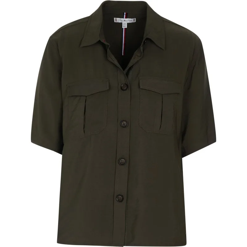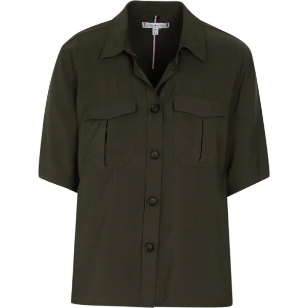 87% viscose, 13% polyamide; Tommy Hilfiger-blouse; Model: WW0WW26756 RBN; Hoogwaardige afwerking; Zachte viscosemix; Kent-kraag; Knoopband; Twee borstzakken; Tommy Hilfiger-logodetails