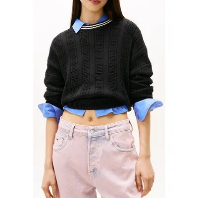 Tommy Hilfiger Boxy Flag Cable Sweater Black