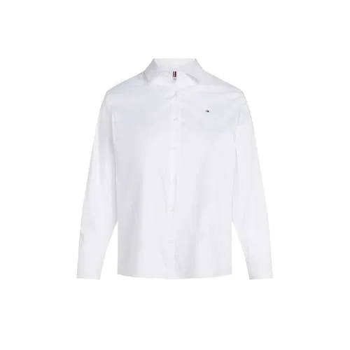 Deze witte blouse van Tommy Hilfiger Curve is een tijdloos basisstuk dat je garderobe rustig en verzorgd laat aanvoelen. De effen witte kleur, de klassieke kraag en de lange mouwen geven een nette uitstraling, terwijl de rechte mouwen en het lichte stretchmateriaal zorgen dat de blouse prettig meebeweegt. Door de pasvorm voor grote maten sluit de blouse mooi aan zonder te strak te zitten.Details die het verschil maken Gemaakt van 97% katoen en 3% elastaan voor een soepele, zachte stof met lichte stretch Klassieke kraag en knoopsluiting voor een verzorgde, vrouwelijke look Lange, rechte mouwen voor extra bedekking en een rustige belijning Effen witte kleur, makkelijk te combineren met broeken, jeans en rokken Ontworpen als onderdeel van de grote maten collectie voor een comfortabele pasvormVeelzijdig voor werk en vrije tijdDeze blouse draagt prettig op een werkdag met een nette broek of een rok, maar staat ook goed op een donkere jeans in het weekend. Open gedragen over een T-shirt creëer je een meer ontspannen look. De effen kleur maakt het eenvoudig om accessoires toe te voegen, zoals een smalle riem of subtiele sieraden.Tommy Hilfiger Curve: bekende stijl in grotere matenTommy Hilfiger Curve brengt de herkenbare, preppy stijl van Tommy Hilfiger naar grotere maten. De ontwerpen houden rekening met vormen en proporties, zodat de pasvorm comfortabel is en de lijnen mooi vallen. Zo haal je de vertrouwde kwaliteit en stijl van het merk in huis, afgestemd op jouw maat.Een frisse blouse waar je het hele seizoen op kunt vertrouwen.