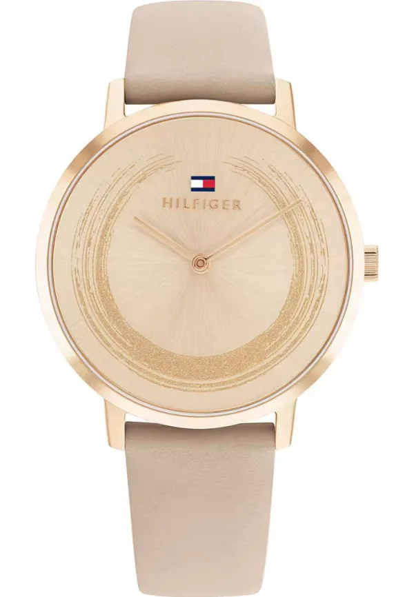 Tommy Hilfiger Dameshorloge Kwarts Goud• Materiaal kastdeksel: Roestvrij staal• Soort glas: Mineraal• Materiaal Band: Leer• Kleur kast: Goud• Waterdichtheid: 0 m (0 ATM)• Diameter: 34 mm