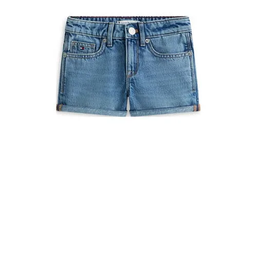 Deze Tommy Hilfiger denim shorts meisjes short is een fijne basis voor zonnige dagen. De korte broek heeft een skinny fit voor een aangesloten look en is uitgevoerd in een medium used wassing die makkelijk combineert met T-shirts, tops en truien. Dankzij het zachte materiaal van 61% katoen en 39% lyocell voelt de denim soepel en licht aan, prettig voor actief spelen en lange dagen buiten.Praktische details in een tijdloze denim look Skinny pasvorm voor een moderne, aangesloten look Verstelbare taille aan de binnenkant voor een goede pasvorm die meegroeit Rits- en knoopsluiting voor gemakkelijk aan- en uittrekken Vijfpocketmodel met twee achterzakken, twee steekzakken en een muntzakje Medium used wassing in een effen kleur die bij veel outfits past Gemaakt van 61% katoen en 39% lyocell voor een zachte, soepele denim Wordt geleverd als enkel stuk, ideaal om gericht een favoriete short te kiezenVoor school, speelplaats en vakantieDeze denim korte broek is geschikt voor allerlei momenten in het dagelijks leven. Naar school met een basic T-shirt en sneakers of in het weekend met een luchtige blouse en sandalen, de short biedt genoeg bewegingsvrijheid en blijft dankzij de verstelbare taille goed zitten.Tommy Hilfiger voor jonge trendsettersTommy Hilfiger staat bekend om herkenbare, moderne styles met een duidelijke signatuur. De kinderkleding is ontworpen met aandacht voor pasvorm, draagcomfort en degelijke afwerking. Zo krijgt je kind kleding die er eigentijds uitziet en geschikt is voor dagelijks gebruik.Een veelzijdige denim short waar je kind de hele zomer plezier van heeft.