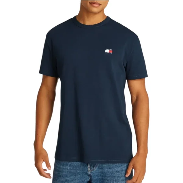 Heren Tommy Hilfiger Tonal Badge T-shirt in het blauw. - Ribgebreide ronde hals. - Korte mouwen. - Licht afhangende schouders. - Tonale Tommy-badge op de borst. - Tommy Jeans branding. - Normale pasvorm. - 100% Katoen. - Ref.: DM0DM20322C1G