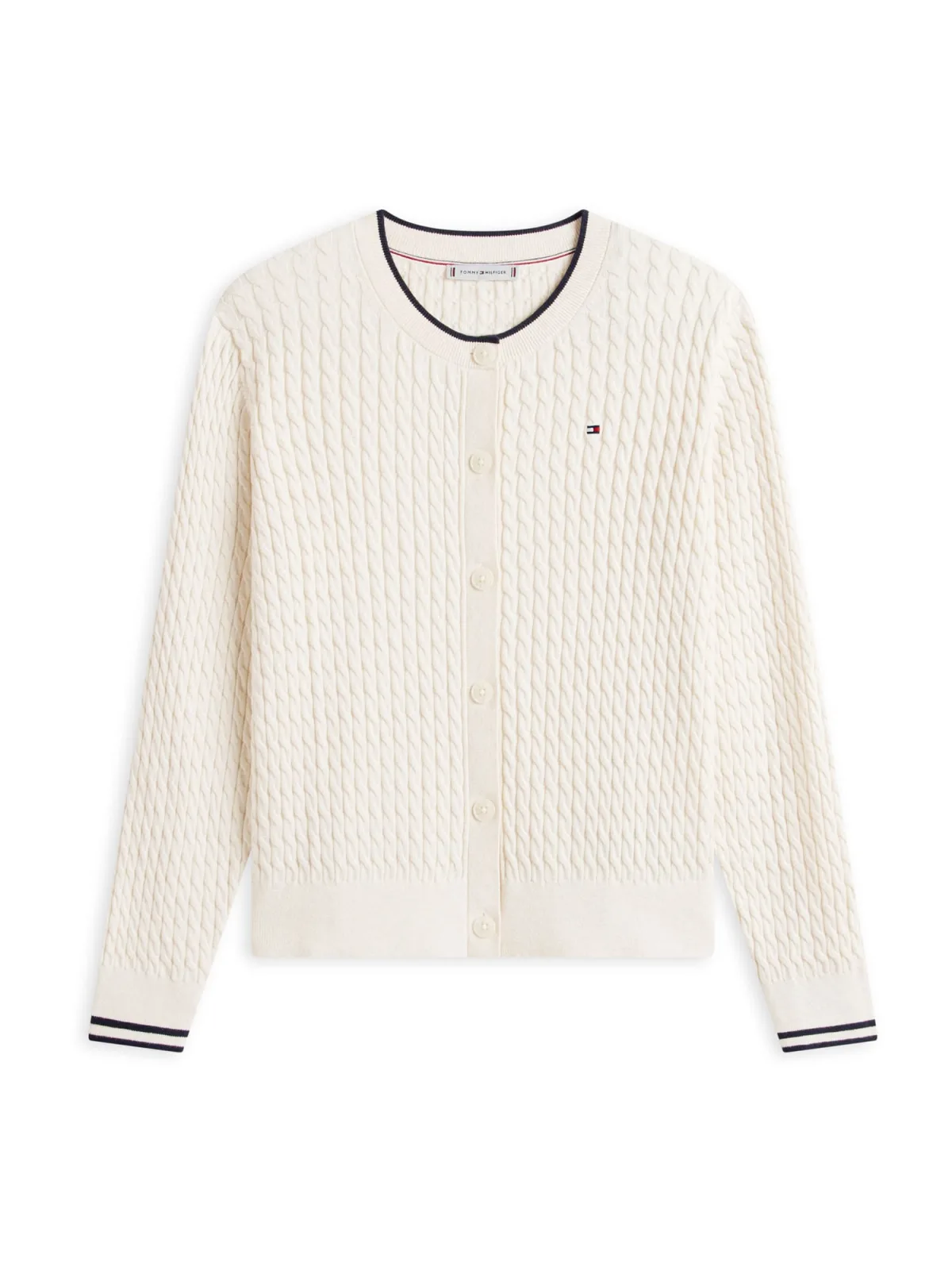 Tommy Hilfiger Cable Knit Cardigan Ivory Petal Tipping