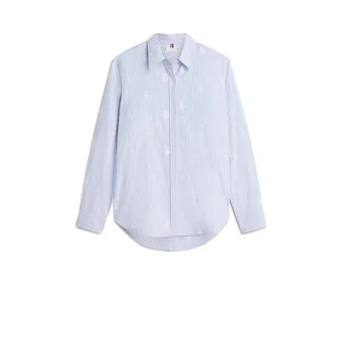 Deze Tommy Hilfiger Oxford blouse heeft lange rechte mouwen en een klassieke kraag. Het model is gemaakt van katoen, heeft een streep en een knoopsluiting. Borduursels maken het ontwerp af.