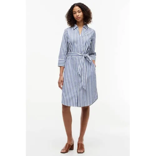 Deze luchtige Tommy Hilfiger jurk is een fijne basis voor zonnige dagen en ontspannen momenten. De jurk heeft een kort model met driekwart mouwen en een klassieke kraag, waardoor de jurk er verzorgd uitziet en toch casual blijft. De blauw met witte streepprint geeft een frisse uitstraling, perfect voor het voorjaar en de zomer. Gemaakt van 100% katoen voelt de stof zacht en ademend aan op de huid.Verzorgde blousejurk met ceintuur Kort model met een rechtvallende pasvorm voor een moderne look Blauw/witte streepprint voor een frisse, tijdloze uitstraling Driekwart mouwen met rechte vorm, prettig voor wisselende temperaturen Klassieke kraag en volledige knoopsluiting aan de voorzijde Ceintuur in de taille om het silhouet subtiel te accentueren Gemaakt van 100% katoen voor een ademend en comfortabel gevoel Jurk zonder zakken voor een rustige, gestroomlijnde lookVoor zonnige dagen en citytripsDeze blauw gestreepte blousejurk past goed bij sandalen of espadrilles op warme dagen. Voor een citytrip of lunchafspraak combineer je de jurk eenvoudig met witte sneakers en een lichte tas. De ceintuur kun je strak knopen voor een gedefinieerde taille, of losjes dragen voor een wat nonchalantere stijl.Tommy Hilfiger stijlTommy Hilfiger staat bekend om iconische, Amerikaans geïnspireerde mode met een casual, preppy uitstraling. De collectie combineert heldere kleuren, herkenbare details en draagbare ontwerpen. Met deze jurk kies je voor een stijl die er verzorgd uitziet en lang actueel blijft.Een fijne keuze voor dagen waarop je er moeiteloos verzorgd uit wilt zien.
