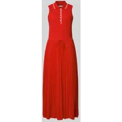 Vrijetijdsjurk van Tommy Hilfiger voor dames;Look: effen;Pasvorm: getailleerd;Lengte: Midi;Kraagmodel: Polokraag;Details: Plissés;Sluiting: Knoopsluiting;Model bandjes: brede bandjes;Materiaalverwerking: Plissé, gebreid;Materiaal: Katoenmix