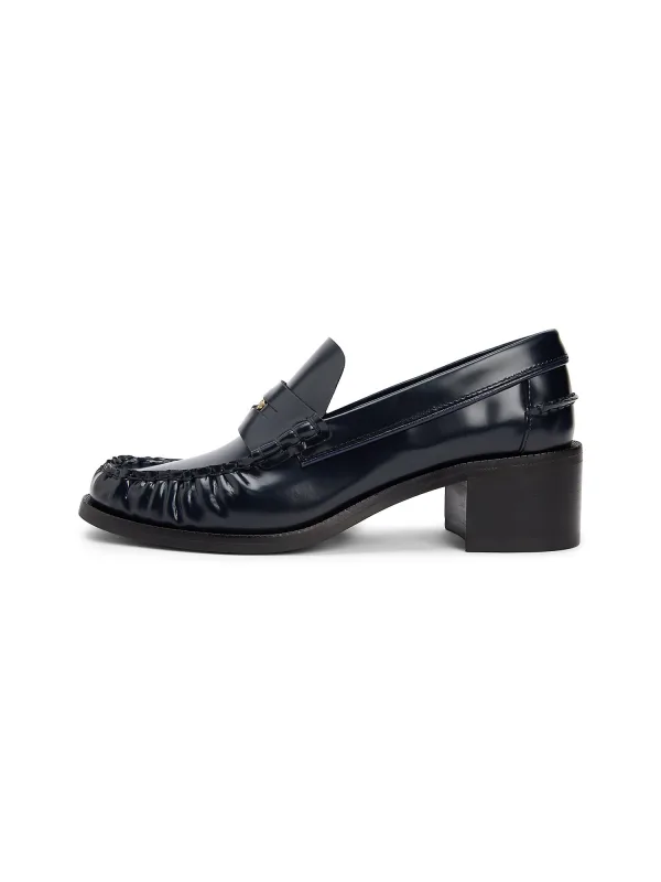 Design: Versterkte hak, Siernaad; Type sluiting: Slip; Type hak: Blokhak; Materiaal: Leer; Motief: Effen; Materiaal: Lak; Schoenneus: Ronde neus; Extra's: Label plaatje, Glanzend, Mocassin stiksels, Flexibele zool; Hakhoogte: Middelhoge hak (3-7 cm)