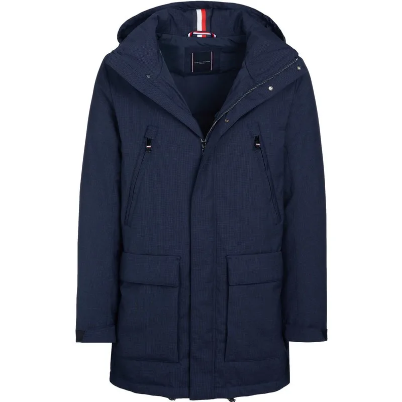 50% wol, 50% polyester; Tommy Hilfiger-jas; Model: TT0TT04445427; kap; Rits met knoopsluiting; Twee voorzakken, twee borstzakken; Tommy Hilfiger-logodetails