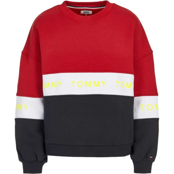 70% katoen, 30% polyester; Tommy Jeans-trui; Model: DW0DW06001 902; Hoogwaardige afwerking; Zachte katoenmix; ronde hals, lange mouw; Extra groot, bijgesneden; Gevoed; Tommy Hilfiger Jeans-logodetails