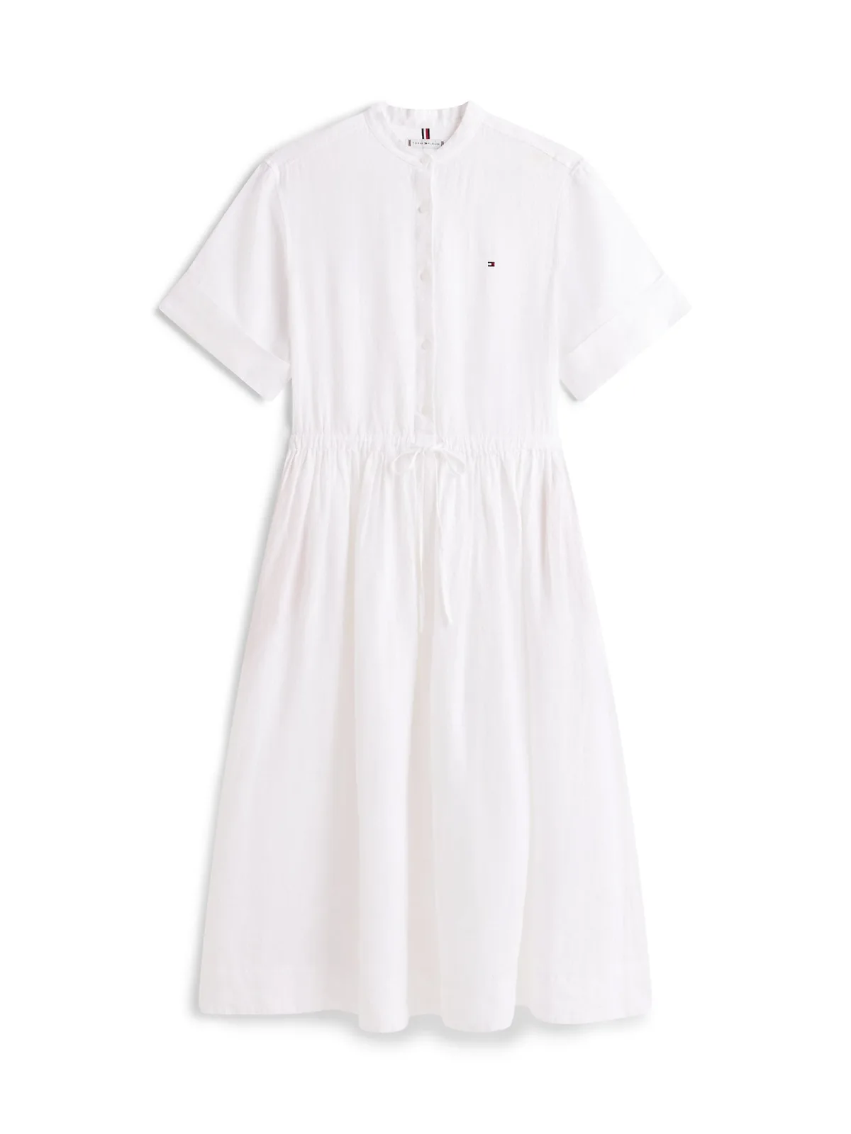 Design: Gevoerde zoom/rand, Taille met trekkoord, Rugplooi, Om te knopen/binden; Type sluiting: Knoopsluiting; Materiaal: Linnen; Motief: Effen; Details: Gedrapeerd; Extra's: Label borduurwerk; Lengte: Knielengte; Pasvorm: Normale pasvorm; Armlengte: Kwartmouw