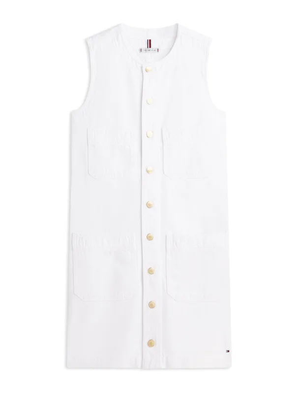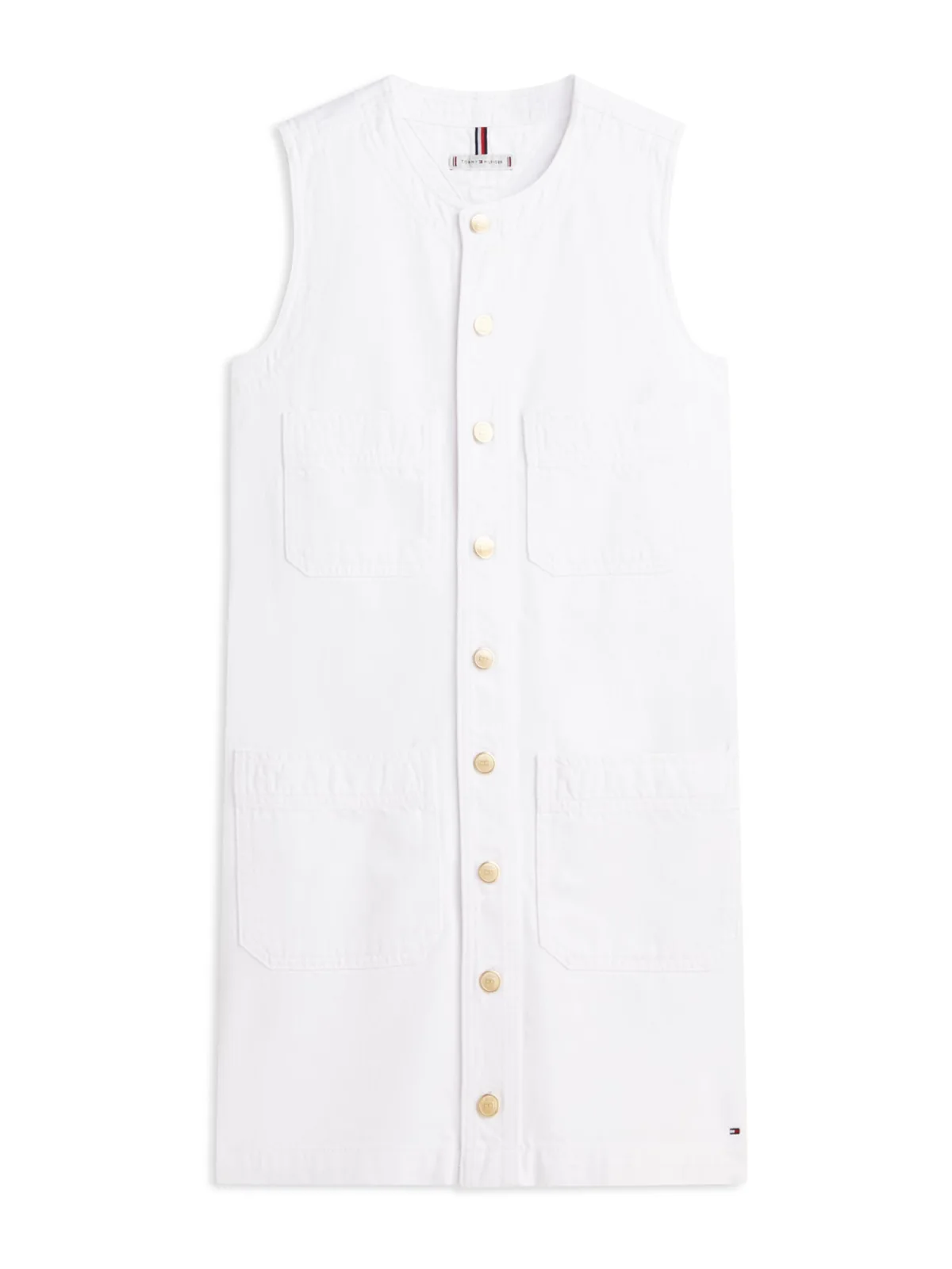 Design: Gevoerde zoom/rand, Rechte zoom, Knop placket, Opgezette zakken, Borstzak; Type sluiting: Knoopsluiting; Materiaal: Denim; Halstype: Ronde hals; Motief: Effen; Soort bandjes: Brede bandjes; Extra's: Label borduurwerk, Op staal naden, Vaste grip, Voelt zacht aan; Lengte: Kort/mini; Snit: Recht; Pasvorm: Normale pasvorm; Armlengte: Mouwloos