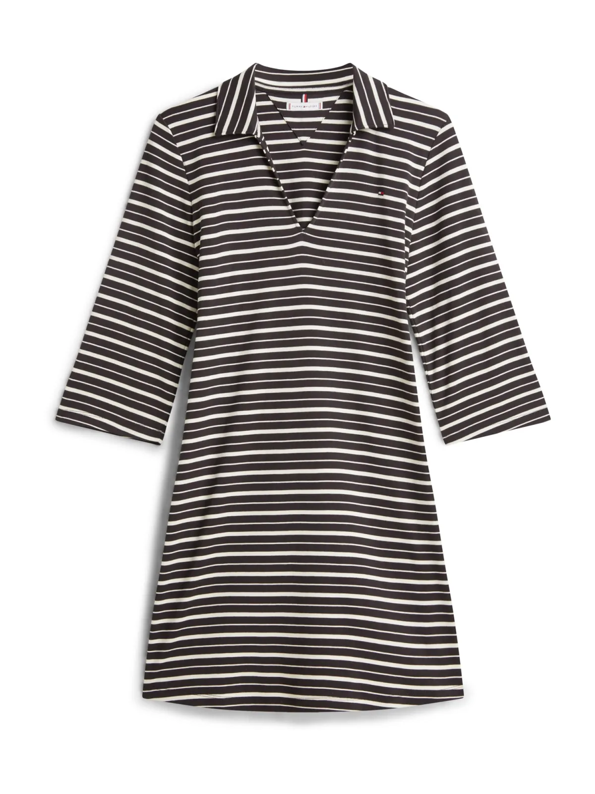 Design: Gevoerde zoom/rand, Rechte zoom, Turn-down kraag; Materiaal: Jersey; Halstype: Polokraag; Motief: Gestreept; Details: Borduursels; Extra's: All-over patroon, Label borduurwerk, Voelt zacht aan; Lengte: Kort/mini; Snit: Recht; Pasvorm: Normale pasvorm; Armlengte: Driekwart mouw